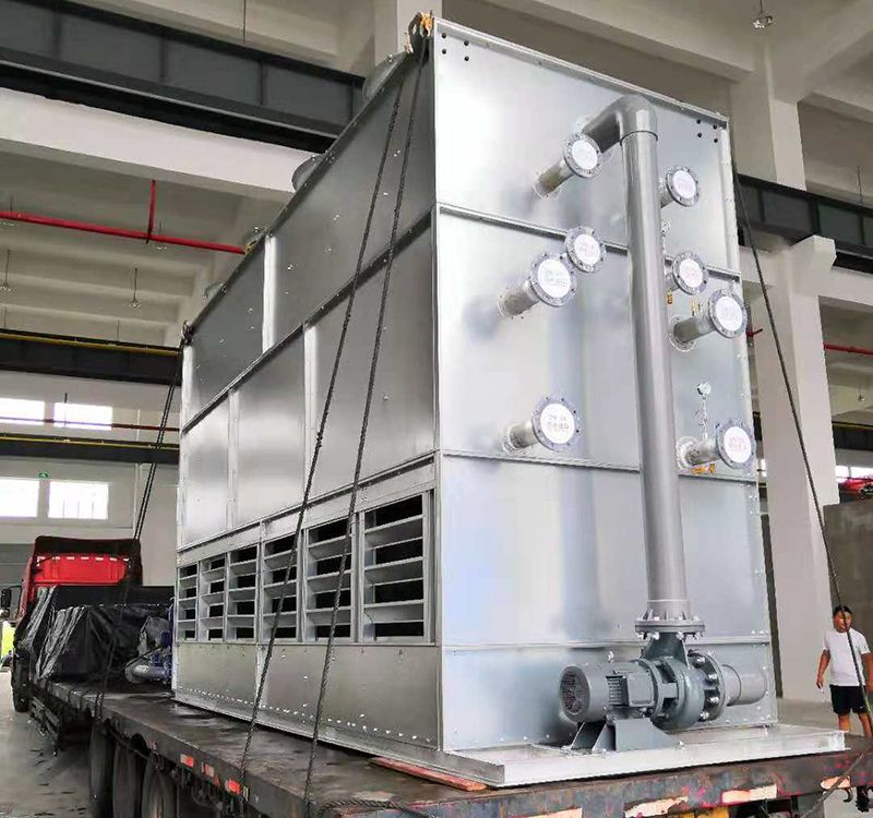 閉式冷卻塔(又稱蒸發式空氣冷卻器、密閉式冷卻塔或封閉式冷卻塔)是在塔內放置一個管式換熱器,通過循環空氣、管外噴淋水和管內循環水之間的熱交換來保持溫度下降。由于循環水封閉在管道中,可以保護水質不受污染,